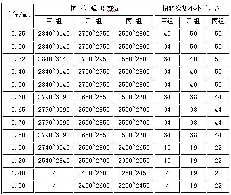 ②鋼絲扭轉(zhuǎn)時,在規(guī)定扭轉(zhuǎn)次數(shù)以內(nèi)不得有肉眼可見的裂紋和分層。