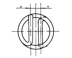 ????對(duì)于半圓鉤環(huán)、圓鉤環(huán)、壓中心圓鉤環(huán)的拉簧鉤環(huán)中心面與彈簧軸心線位置度如圖2所示,按表8的規(guī)定。其他鉤環(huán)的位置度公差由供需雙方商定。